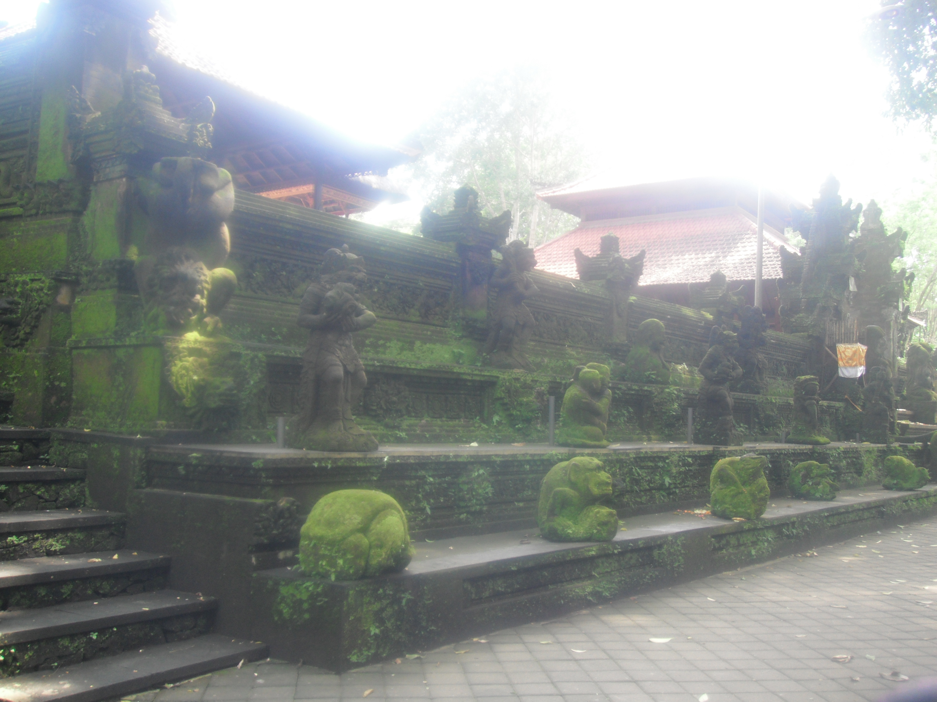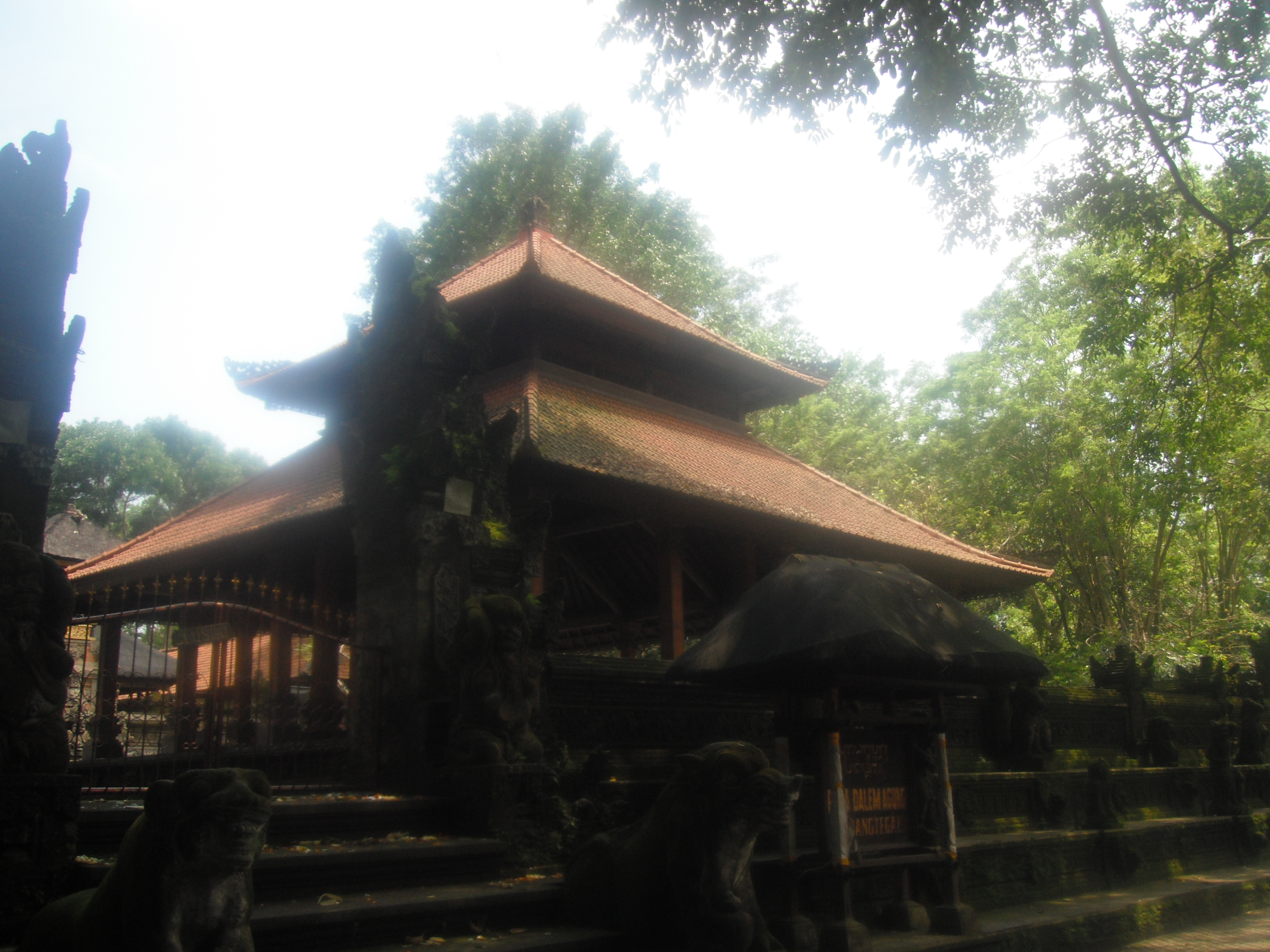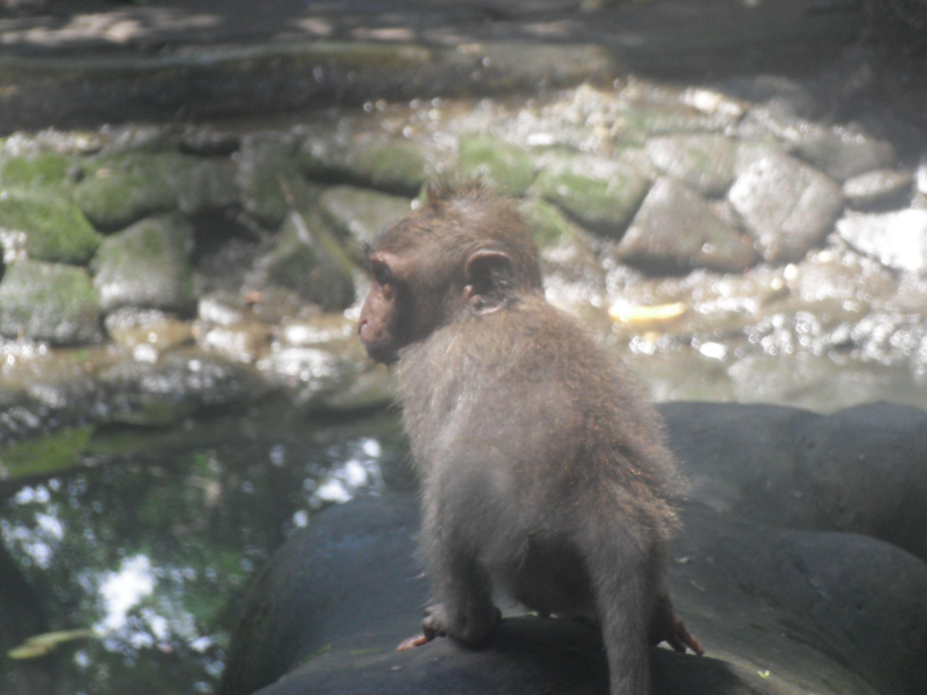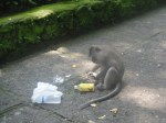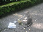 Dienstag Morgen sind wir relativ zeitig aufgestanden und haben uns nochmal an den Pool gelegt und danach gabs Fruehstueck. Fuer mich diesmal French Toast mit Fruechten und dazu ultrastarken balinesischen Kaffee. Danach hiess es wieder zusammenpacken, da 45 US$ die Nacht im „Artini’s Cottages“ schon relativ teuer waren. Wieder mal schliffen wir uns die Strasse entlang und schauten ein paar Zimmer in diversen Gaestehaeusern an. Entschieden uns dann schlussendlich fuer ein Zimmer im Pangkung House, was direkt neben Artini’s Cottages liegt. Zahlten dort fuer das Zimmer ca. 15 EUR ink. Fruehstueck zusammen. Nachdem wir umgezogen waren, machten wir uns auf um in den Monkey Forest zu gehen. Kauften vorher noch Wasser und Eistee, was sich kurz darauf als Fehler erwies…