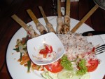 Da es auch nicht aufhoerte zu giessen, schmissen wir erstmal nen Film an und warteten ab. Ne Weile spaeter hoerte es dann endlich mal auf und da wir am Verhungern waren, liefen wir schnell in das Restaurant nebenan. Dort hab ich mich mal gegen was Einheimisches entschieden und hab Chicken Nuggets und dann Spaghetti Napolitana bestellt mmmmmh, musste mal wieder sein nach ner Woche Reisdiaet 😉 Dazu gabs wieder mal nen leckeren Saft, diesmal Orange-Karotte. Als wir fertig waren gingen wir zurueck zum Zimmer und dort wartete bereits eine SMS von Tony, der ein Freund, eines Freundes von mir ist (Seb, danke fuer den Kontakt mit Tony 😉 ) Der wohnt seit fast 6 Jahren in Ubud (kommt eigentlich aus den USA)und hat dort das Lokal ‚Devilicious‘ aufgemacht und wir trafen ihn dann kurz darauf auch dort. Verbrachten da nen super Abend mit ihm und er ist echt ein richtig cooler Typ. Er hat uns sogar zu seinem 40. Geburtstag im Juli nach Bali eingeladen, hmm na mal schauen 😉