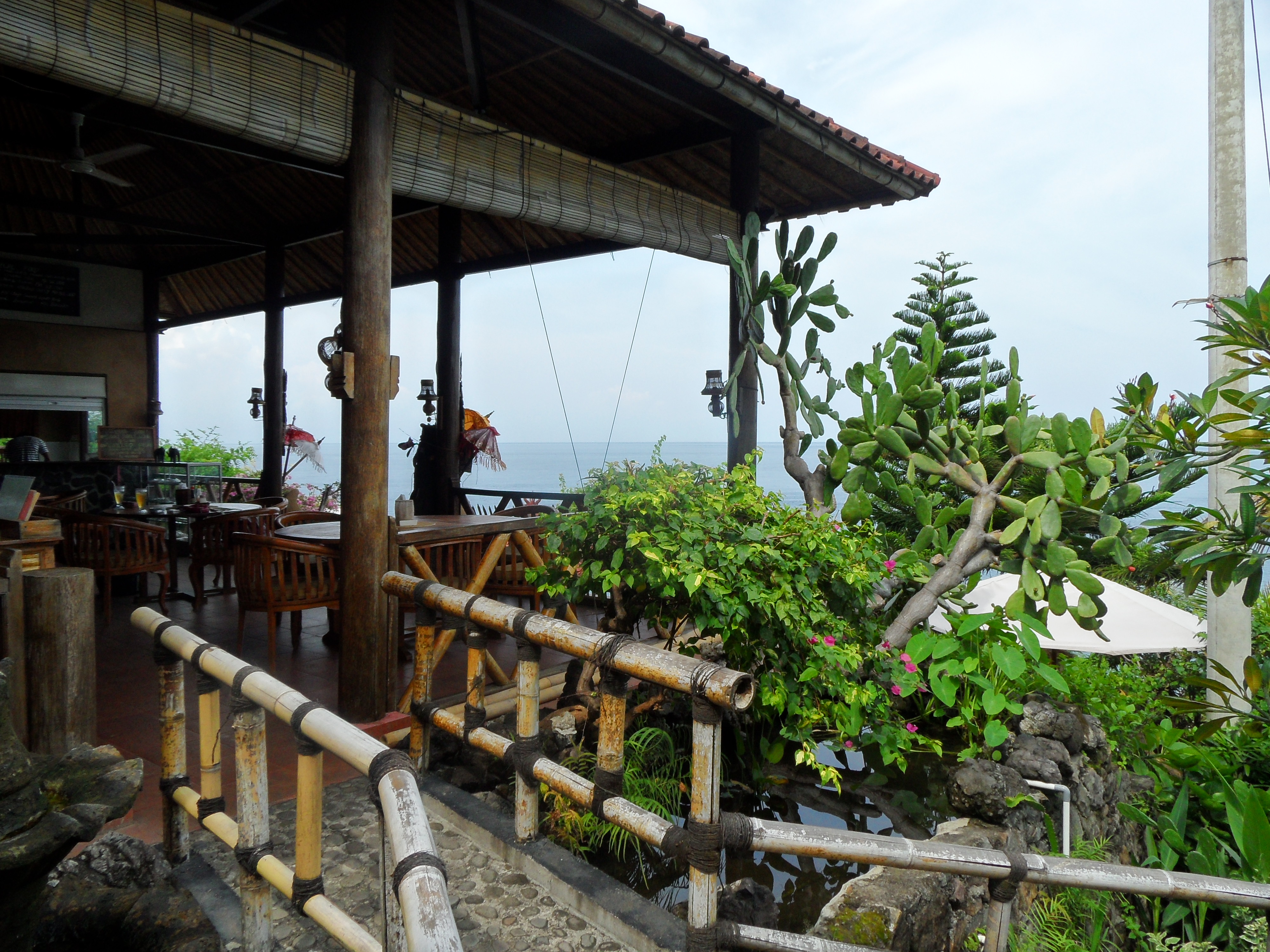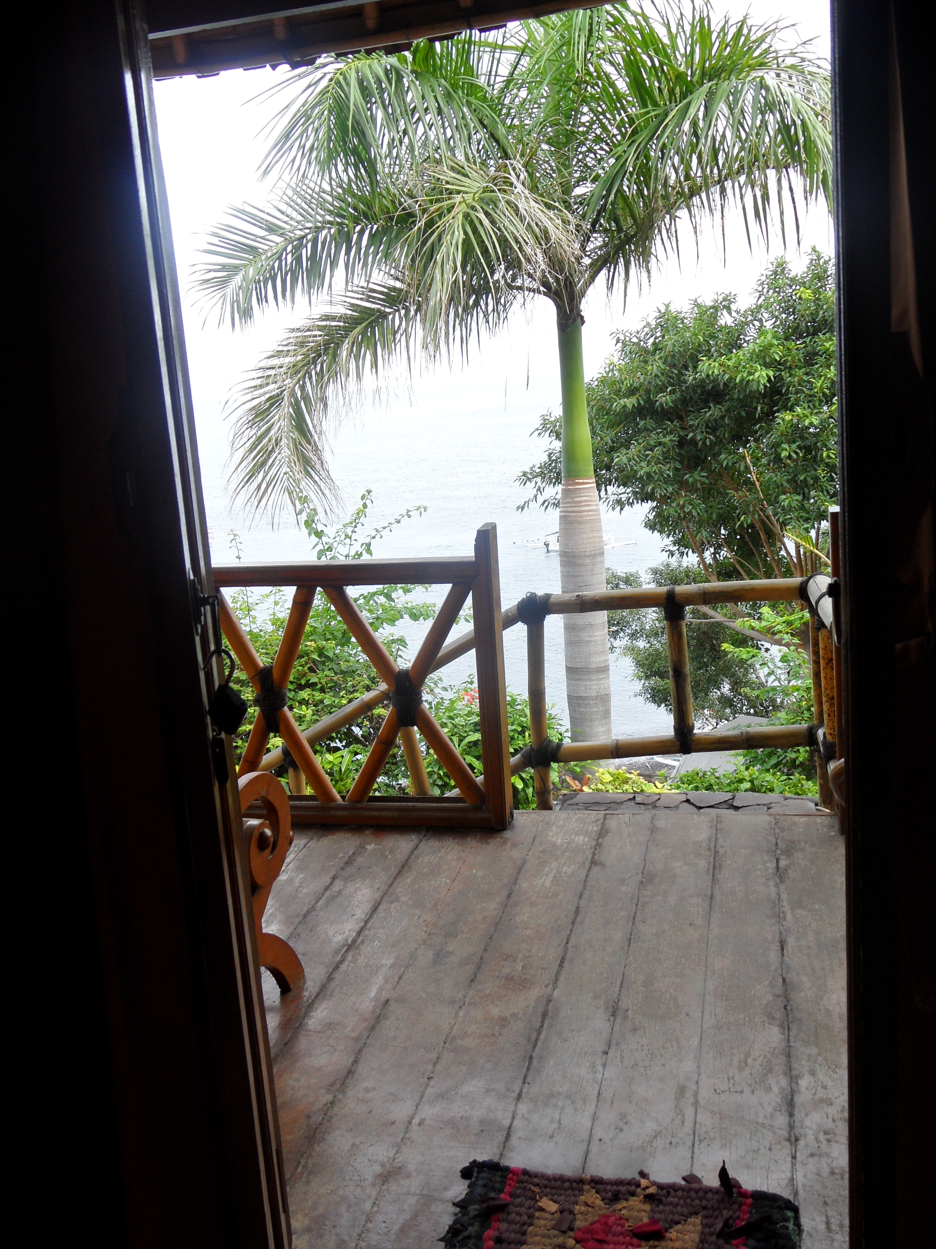 Mittlerweile ist es bereits Mittwoch Nachmittag und ich sitze auf der kleinen Terrasse unseres Bungalows im Eka Punama was 9 km suedlich von Amed an der Ostkueste Balis liegt. Ich glaube so stellt man sich das Paradies vor. Ich kann von hier aus das Meer vor mir sehen und die Wellen rauschen hoeren. Ein Traum…