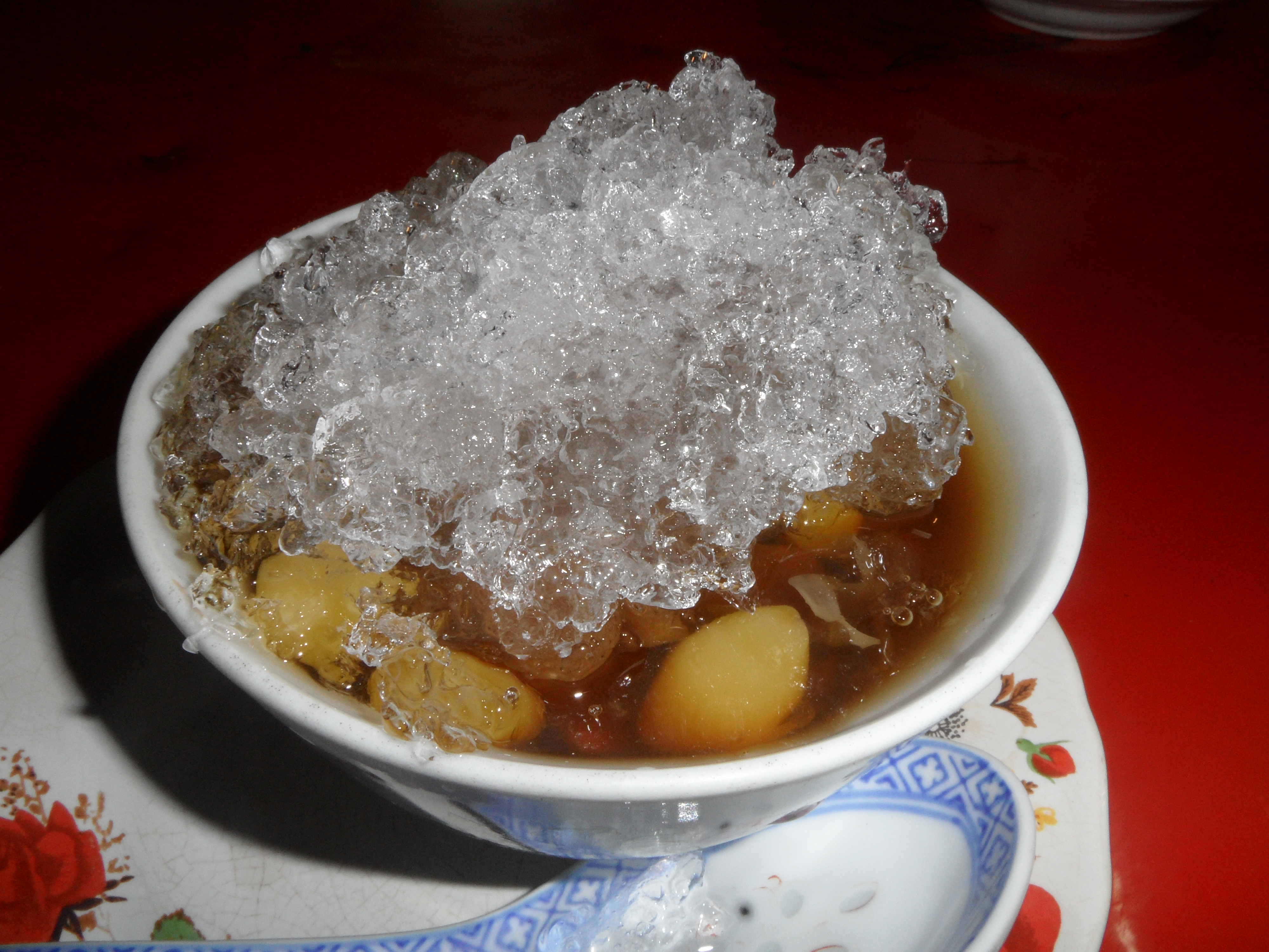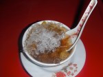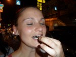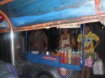 Dann fanden wir schliesslich einen Stand, wo man uns Schuesseln mit eingelegtem, asiatischen Obst und ‚crushed Ice‘ servierte. Also ich muss sagen, ganz so mein Fall war das nicht. Vieles konnte ich gar nicht probieren, weil es einfach so glitschig aussah und es schmeckte einfach unglaublich suess… Das einzige was mir davon gut geschmeckt hatte, waren so weintraubenaehnliche Dinge, die nussig geschmeckt haben, aber der Rest, war nicht so mein Ding… Naja, probieren muss man wohl alles mal 😉 Unterhielten uns dann noch ne Weile und brachen schliesslich wieder auf. Jenny und ich kauften dann noch kurz was im Supermarkt ein und gingen schliesslich zurueck zum Hotel. Davor verabredeten wir uns noch mit Mayuree fuer morgen. Sie will uns ein paar Tempel zeigen, mit uns eine Bootsfahrt machen und zu ner Thaimassage geht’s auch noch. Ooooh ich freu mich schon so 😀