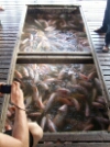 Da es Jenny etwas schwindelig war, machte ich den zweiten Tauchgang mit dem Guide allein. Und ich wurde nicht enttäuscht, das Wasser an der Stelle war glasklar und dort gab es auch viel mehr Fische. Es ist einfach so ein tolles Gefühl, in diese andere Welt rein zu kommen, all die bunten Fische und das Gefühl haben zu schweben, einfach traumhaft 😀 Nach 40 Minuten ging es dann wieder zurück aufs Boot und wir fuhren zu einer Fischfarm, mitten auf dem Meer. Das war so krass und mir ist ds für einen kurzen Moment die Lust nach Meerestieren vergangen. Die haben da eine Art riesiges Floß, von wo viele Netze ins Wasser gehen, die wie ein Quadrat angeordnet sind. In jedem Quadrat schwammen verschiedene Meerestiere. In einem waren sehr viele Tintenfische zusammen mit Krabben, daneben die größten Hummer die ich je gesehen habe und daneben ein Netz mit riesigen Fischen, die in der Enge nur im Kreis schwimmen konnten. Dann waren noch Netze mit Muscheln, kleineren Fischen und in einem versteckte sich sogar eine große Krake!!! Ich hab noch nie eine lebendige gesehen und die tat mir schon ziemlich leid, wie sie da in der Ecke des Netzes hockte und nur von einer Seite zur anderen schwimmen konnte 😦