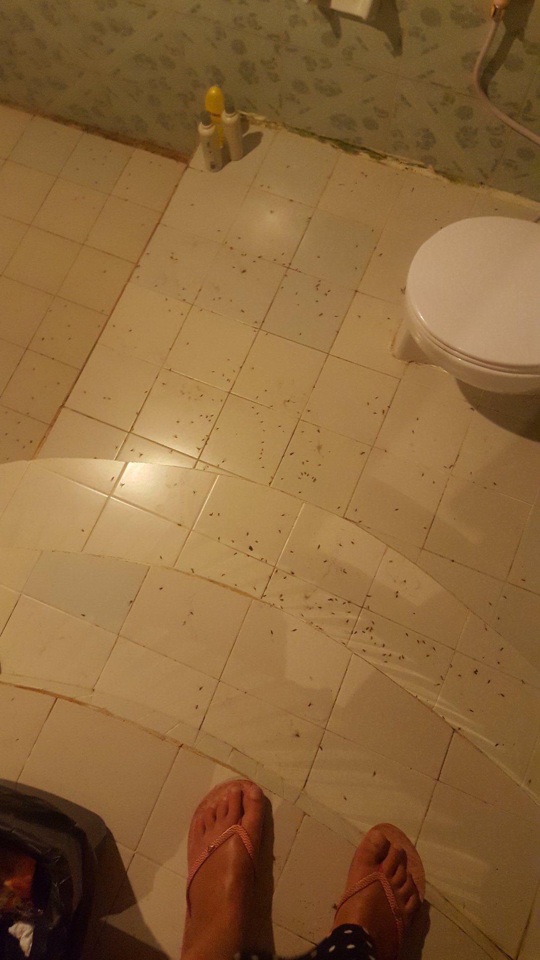 Meinen Kreischalarm könnt ihr euch wahrscheinlich denken. Marco kam also heran geeilt und fand mich halb hysterisch mit dem Duschkopf wedelnd im Bad vor, bzw. sah wahrscheinlich auch nur diese Insektenwand, die sich auf, vor, über, neben und unter mir befand. Ich versuchte die Teile so gut es ging vom Körper zu waschen und flüchtete nach draussen. Zum Glück hatte ich noch meinen Bikini an, aber ich wäre auch nackt kreischend da raus gerannt hahaha. Das war so abartig. Wir schalteten erstmal das Licht im Bad aus und im Zimmer an, FEHLER! Die Viecher folgten uns weiter und dann machten wir draußen auf der Terrasse das Licht an und drinnen überall aus, somit waren diese Teile wenigestens schon mal aus dem Haus raus, also die, die meinen Duschangriff überlebt hatten.