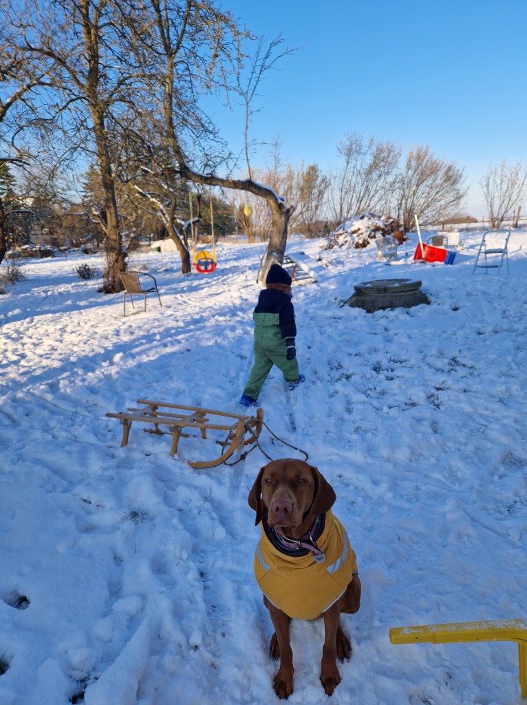 Ansonsten läuft alles gut hier in Deutschland, mein Kleiner und Molly sind mittlerweile beide 3 Jahre alt und die Zeit vergeht wie im Flug. Momentan liegt hier wieder einiges an Schnee, nachdem es die letzte Woche sehr oft und ausgiebig geschneit hat. Leo freut sich also über ausgiebige Schlittenfahrten, Schneebälle werfen und Schneemann bauen und Molly liebt es durch den Schnee zu jagen, auch wenn ihr dank fehlendem Unterfell doch schneller kalt wird, weswegen sie im Garten dann ne Hundejacke trägt 😉