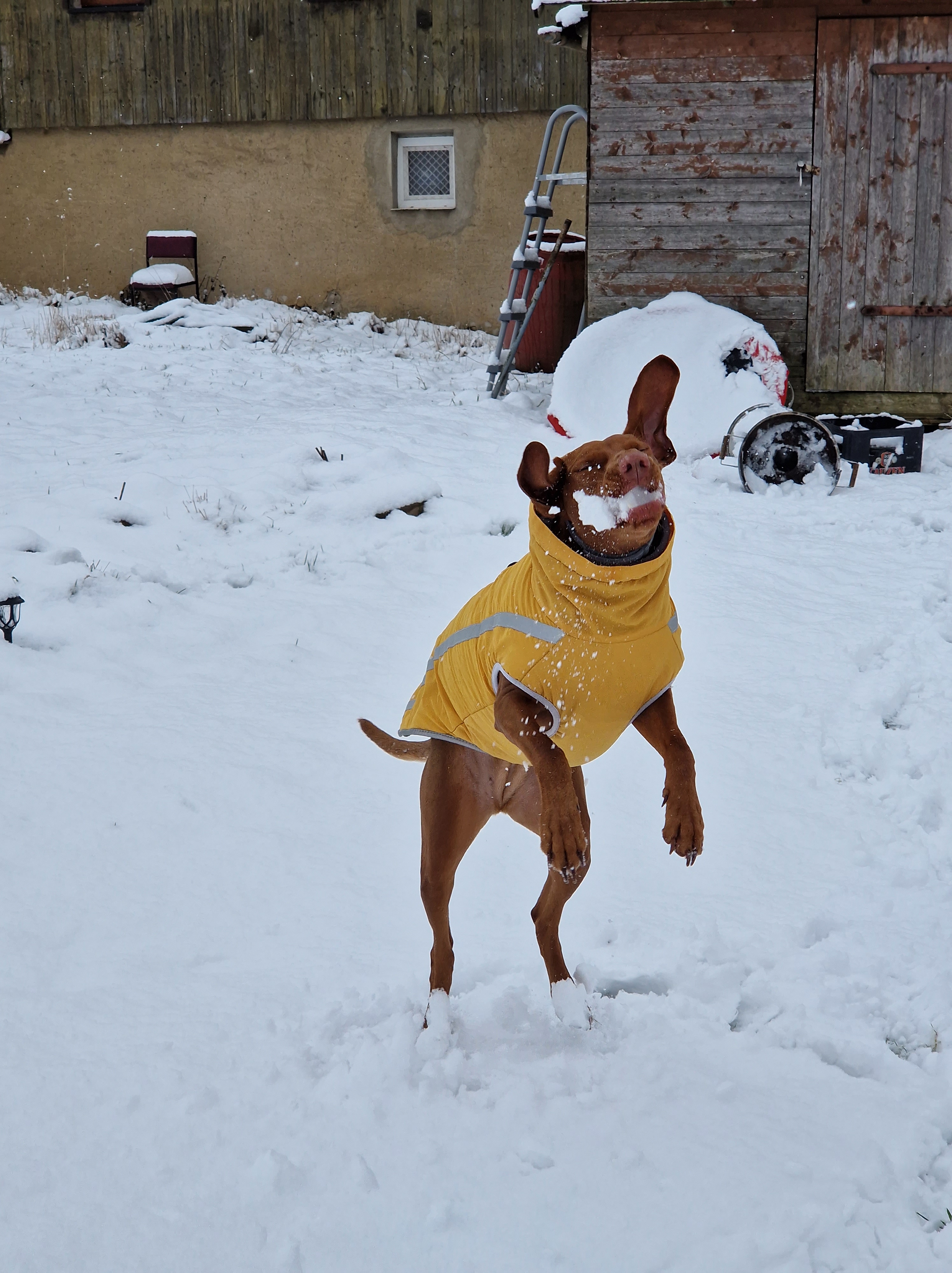 Ansonsten läuft alles gut hier in Deutschland, mein Kleiner und Molly sind mittlerweile beide 3 Jahre alt und die Zeit vergeht wie im Flug. Momentan liegt hier wieder einiges an Schnee, nachdem es die letzte Woche sehr oft und ausgiebig geschneit hat. Leo freut sich also über ausgiebige Schlittenfahrten, Schneebälle werfen und Schneemann bauen und Molly liebt es durch den Schnee zu jagen, auch wenn ihr dank fehlendem Unterfell doch schneller kalt wird, weswegen sie im Garten dann ne Hundejacke trägt 😉