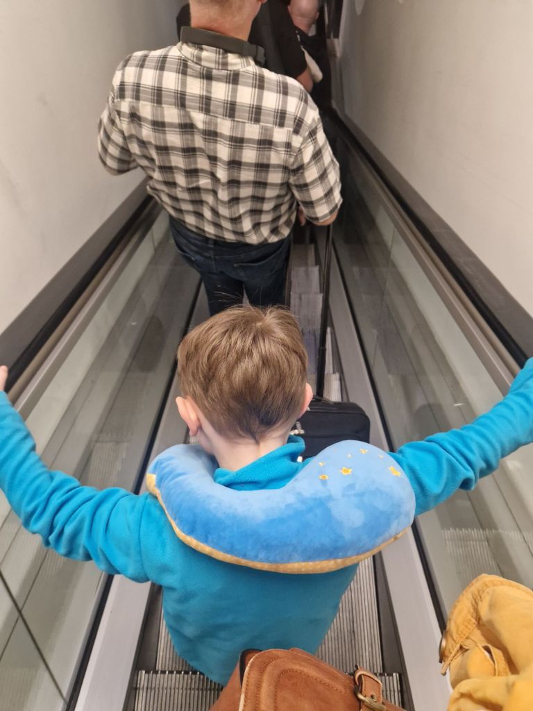 Nun ja, jedenfalls fuhren wir dann doch pünktlich ab und kamen dann, 3.5 Stunden später am Flughafen an, wo wir schnell unser Gepäck abgaben und durch die Security gingen. Natürlich bekam ich wieder eine Ganzkörperabtastung und dann wurde Leos Tonie-Box noch nach Drogen untersucht😂