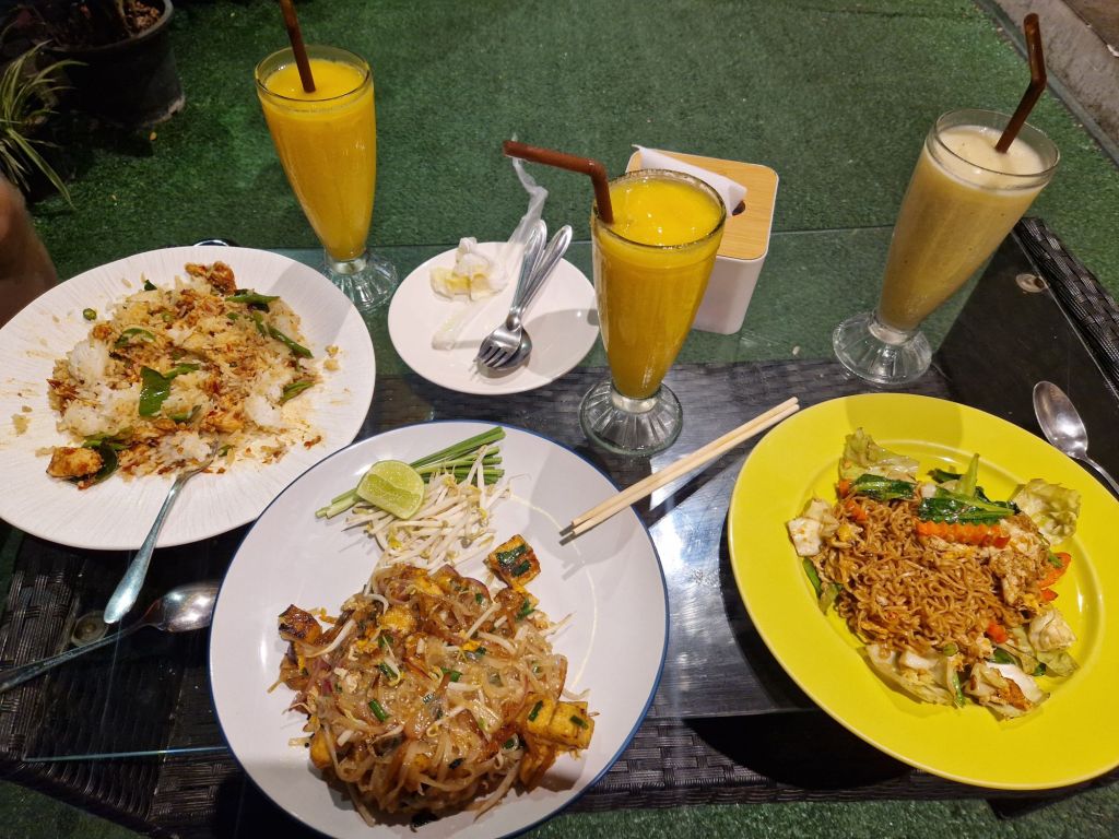 Als die Sonne schließlich weg war, machten wir uns im Zimmer kurz frisch und liefen später los, um was leckeres zum Abendbrot zu finden. Nach vielleicht 20 Minuten Fußmarsch durch Sukhumvit, fanden wir schließlich ein kleines Lokal, in welchen wir lecker speisen konnten. ENDLICH WIEDER PAD THAI!!!!